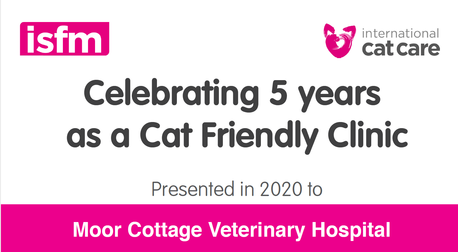 It was recently time for the International Society of Feline Medicine to re-assess our facilities here at Moor Cottage in order to ensure we’re still delivering the best experience for cats. The great news is that we are! We were re-accredited at Gold standard, which marks 5 years for Moor Cottage as a Cat Friendly …